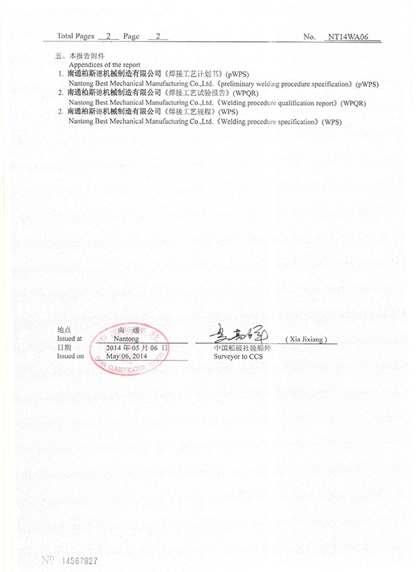 Welding procedure qualification report of CCS Classification Society